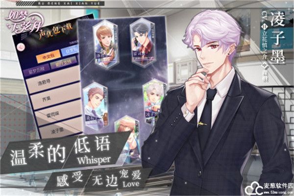 特邀羊仔、轩zone、景向谁依、半坛醋、商桐等知名声优倾情献声,五大男神围绕在你的耳畔温柔低语,为你拂去练习生涯的疲惫,还能在专属的剧情中,与他们共度一场心动之旅。