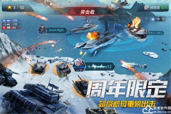 一款大型策略战争手机游戏。游戏中,你能操控从一战到现代的各类知名战争武器,涵盖海陆空三面武器,率领这些武器组成一支无敌的部队来征战世界。在这里,你不仅可以率领航母出征,感受海战的刺激,还可以同时感受陆战和空战的轰击特效,游戏模拟最真实的战斗环境,让你仿佛置身于世界大战之中。