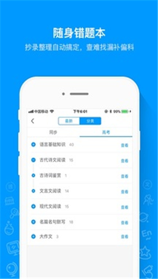 1、错题自动整理:随身错题本,按照考点分类整理,巩固复习不落下。