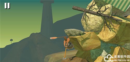 5、随后,会碰到一个短的树枝,方法和上面的一样,需要先猛的锤一下下面的石头,在腾空时,马上勾住树枝,就顺利通过了。