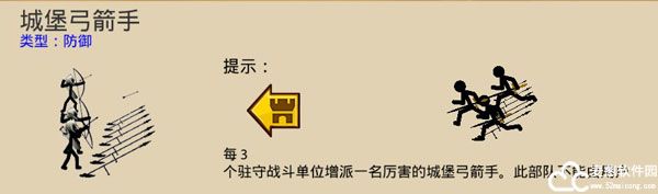7、城堡弓箭手:在玩家点击进行城堡防御后生效,此单位不受玩家控制。