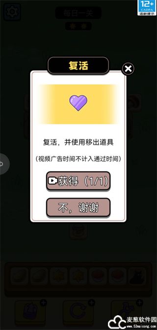5、当下方卡槽放满了,游戏还有一次复活的机会;