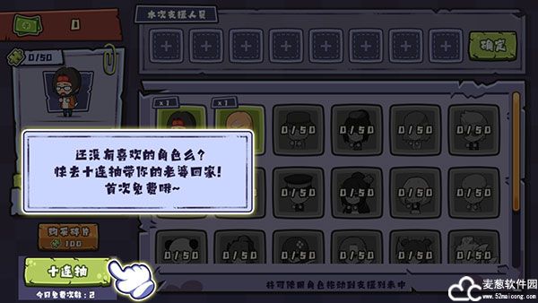 4、如果没有喜欢的角色,可以点击左下角“十连抽”进行抽卡,首此免费~