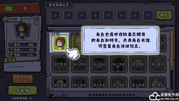 3、角色仓库中存的着已拥有的角色和碎片,点击角色头像,左侧可查看角色详细信息。