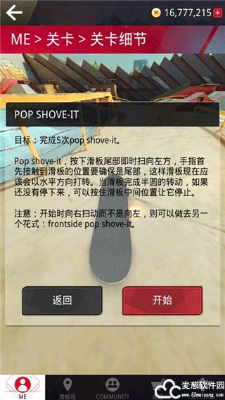 目标:完成5次pop shove-it.