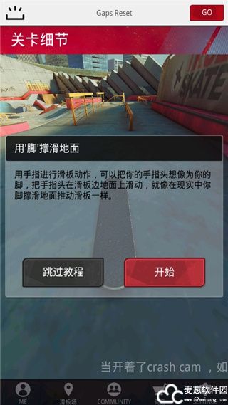 用手指进行滑板动作,可以把你的手指头想像为你的脚,把手指头在滑板边地面上滑动,就像在现实中你脚撑滑地面推动滑板一样。