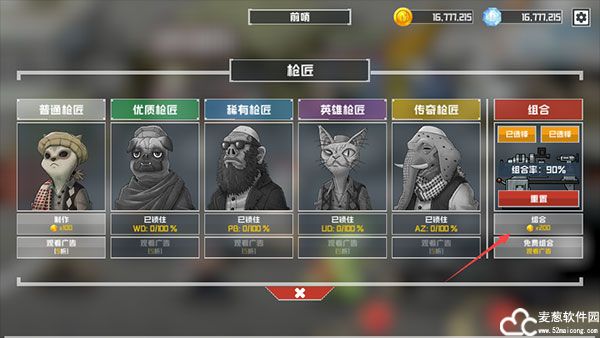 2、放入枪械后点击【组合】开始枪械的合成