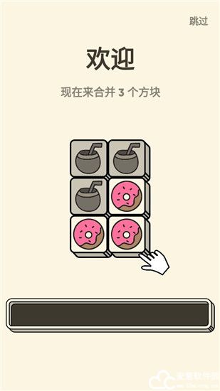 1、下载进入游戏,将三个相同的方块组合到一起即可消除
