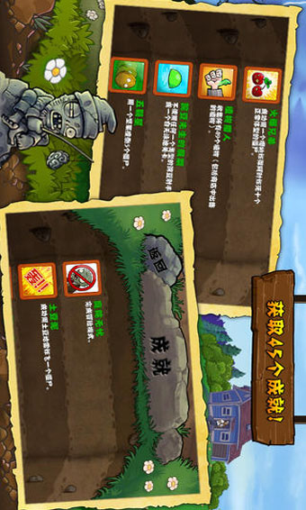 4、49种功能强大,互不相同的植物,并可收集硬币购买宠物蜗牛等多种可选道具