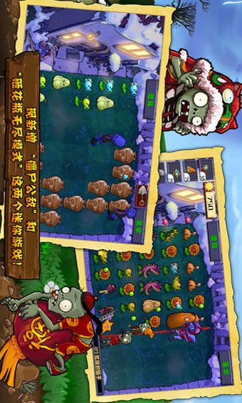 2、多达50个的冒险模式关卡设定,从白天到夜晚,从天台到游泳池,场景变化多样