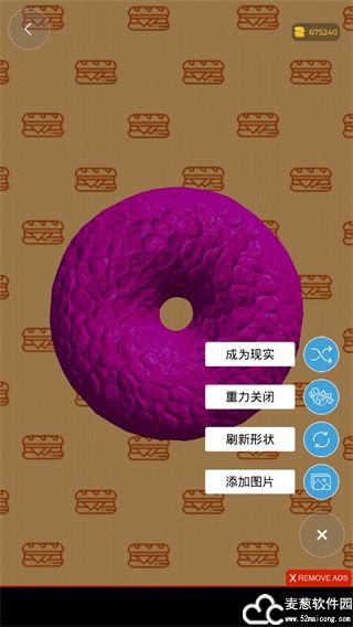 3、在“+”号的功能选择里,有成为现实、添加图片、重力开启、刷新形状这四大功能;