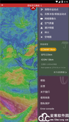 1、Windy天气预报中文版拥有漂亮和简单的界面。