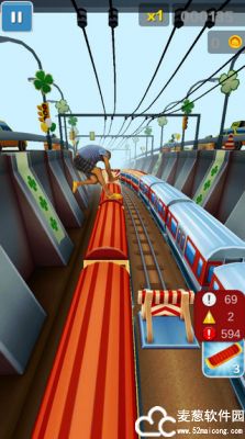 玩家们在游戏中不仅要收集金币,扑面而来的火车也会让你累够呛,在这个过程中你可以使用道具,加速道具能够让你快速前进,使用滑板可以帮助你多出一条生命,点击屏幕两次可以使用道具。