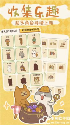 3、雇佣可爱的猫咪员工,布偶,虎斑,大橘!还要和个性古怪的大厨搞好关系!只要你用心经营,客人总会络绎不绝。