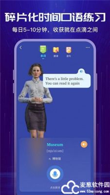 体验沉浸式虚拟语境,开启迷人的英语学习之旅。你可以拥有一个自己专属的虚拟数字外教和探索的向导。 按照你的节奏,你的水平,你的时间,用外语和感官去探索异国新世界。全真的视觉外观,二语语言的全新的虚拟交互,使二语学习,自然而然地发生,融入在场景交流和知识话题的探索之中,整个二语的新世界就是你无形的课堂。每次与数字人外教进行对话交流,都是朝着用二语来完美表达自己的意图,朝向发音和流畅性迈出坚实的一步,显著提高现实生活中的外语对话能力,同时探索并改变自己看待新世界和对外交流的方式。受益于最新的语音识别技术和语法纠正技术,数字外教可以理解你的意图,并回答你所说的任何内容,同时提供发音和语法的即时反馈。你可以尽情挑战数字外教的智商,成为终身的智友。