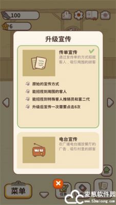4、解锁更多成就,宣传次数,解锁设施,解锁菜谱,解锁顾客数量都可以获得奖励。