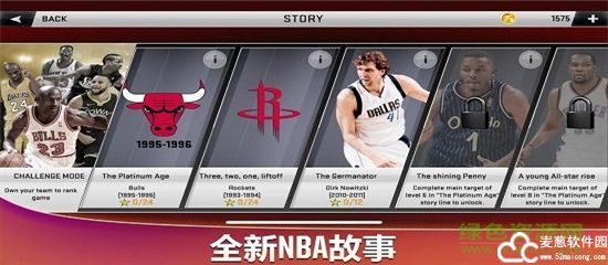 进行5个全新NBA故事模式游戏,细细品位著名NBA球星和球队的历史!