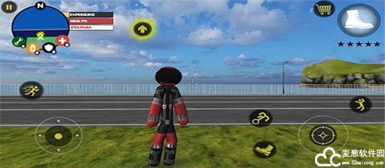 左侧移动、加速,右侧绳索,攻击(跳跃),跳跃,右上侧的武器更换以及血量、经验的显示都实时更新,一览无遗,凭借着大家自由的玩法,与其他帮派的人物进行交火,期间杀人能够获得经验,杀多了会产生星级,警察和其他附近角色会特殊照顾你对你展开火热的进攻,而如何存活,如何将其他人物击杀则是你所需要完成的任务。