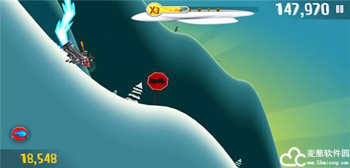 到后面你如果完成相应的成就还可以解锁更有趣的道具,比如可以带着企鹅还雪怪一起逃生的雪地车。。如果你滑的速度够快,在适当的坡度的地方还会插入云霄里。哈哈。