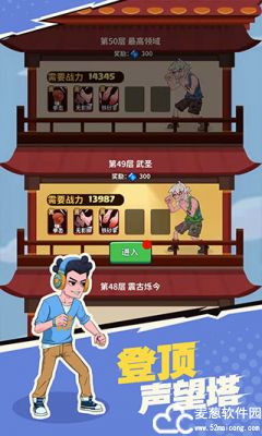 5.通关爬塔提高声望,从废柴到武圣,只需打败四十九层云集的高手,我们可以根据自己的战力选择通关合适的层数,同时获取大量钻石奖励。