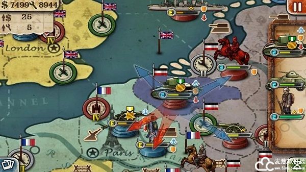 这是苏州市乐志手机软件科技公司研发的回合制战争策略类手游。游戏故事背景于19世纪初至20世纪,战斗单位有步兵、骑兵队、大炮、机枪兵、步战车、重型坦克、航母、巡逻舰和舰船九种。游戏玩法和系列前两部产品差别很大。战斗单位不会再以总数测算,而是用生命值测算。进攻总数也按生命值测算。摇骰子之和将扣减敌人生命值。并且一块国土较多能够有四个战斗单位。占领敌军首都即会造成敌军亡国。除此之外,针对游戏的玩法,它给玩家提前准备了很多的副本作战,其作战有别于同一类别的游戏副本,由于游戏的大战副本融进了32个国家和地区的1271个行政区,它融进了不计其数的史诗战斗!总而言之,游戏不但带来了各种各样游戏玩法,并且很好地尝试了游戏玩家防范措施和状况操纵,因此游戏能够令小伙伴们体会到不同类型的帝国战争玩法。