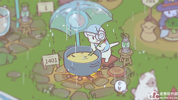 猫咪每生产一份菜,都能够获得额外的食谱点,食谱点就是精力。下雨时,做饭的猫咪会自动打开雨伞。