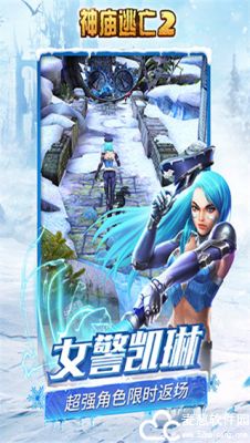 这是一款令人激动和有趣的动作跑酷类游戏,选用跑酷的游戏玩法,延续了经典的神庙逃亡系列产品中的经典游戏内容,并加了各种各样令人兴奋的游戏元素,让整个游戏更具有趣味性。玩家将会控制着一个印第安纳琼斯一样的角色,逃出了热带雨林的一座庙宇,被神庙中一群猴子模样的恶魔守卫追赶。 人物是自动不断向前飞奔的,而玩家则需要控制他避开逃亡路上遇到的各种危险。并且游戏并未采用常见的2D横版画面,取而代之的是全3D的第三人称视角,给人一种超真实的动感体验。相同的寺院,全新的游戏画面,相同的跑酷玩法,更多的游戏道具,让热情永不停止。游戏玩起来非常有趣,在跑酷的过程当中还能够搜集各种金币,充足的金币就可以买到游戏道具或肌肤。