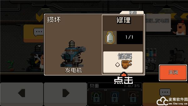 3、这里需要将自行车打碎获取材料修复发电机,再将制作药丸的机器修复好;