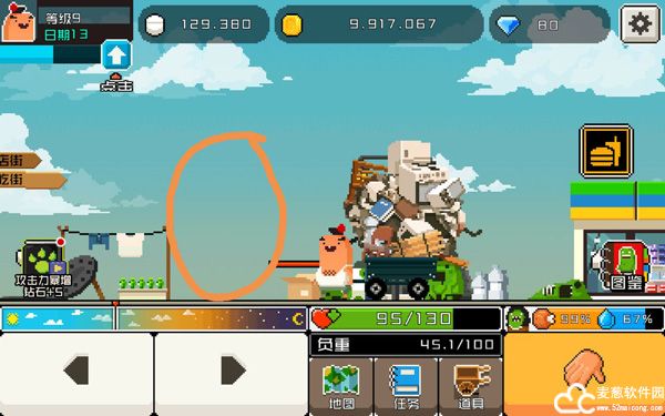 5、打碎街上的一切,收集材料,升级你的研发机器。