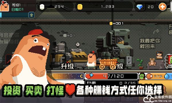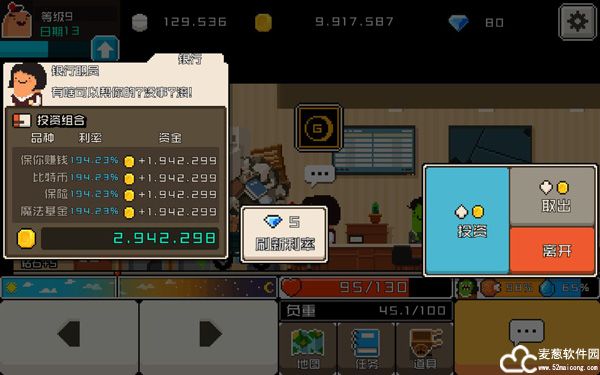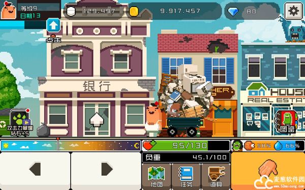 进银行可以投资一部分钱等着利滚利就行了(点击一次最多999.999,可以多点几次),苹果和银行弄完了,个人觉得嗑药小哥是个长期快速挣钱的方法(这个貌似早上好!僵尸也适用),