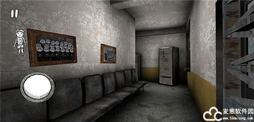 8、藏身地:游戏中可以藏身的地方有大衣柜,大衣柜打开后走到衣柜里然后关上门就可以了。打开的矮柜子,当你的白点指到他敞开的口时屏幕的右上方会有一个图标点击进入后就可以钻进柜子了,这个柜子在二楼。