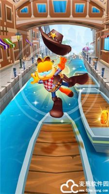 4、超萌画风下的加菲猫敏捷跑酷休闲向手机游戏,官方正版授权,给你超棒跑酷冒险