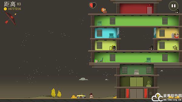 游戏让大家体验到了只需一手操控也能感受猛烈撞击的快感,刚开始贴心的新手教程也足矣让玩家一目了然,只需上下滑动屏幕,便可操控这位大胡子上下跳跃来回穿梭撞击在各个楼层之间,并在躲避敌人的攻击同时攻击敌方解救人类。