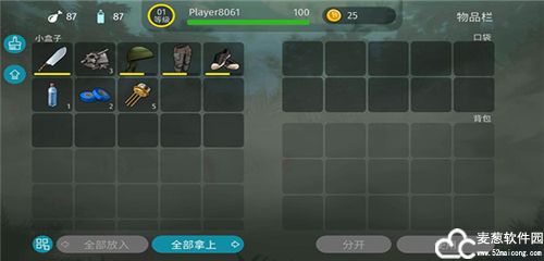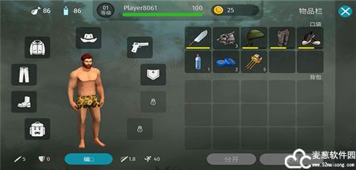 4、这些都是需要优先做,否则我们身上根本带不了多少材料,打开背包,将我们制作好的背包放到人物身上,这样下半部分空格就可以使用了。