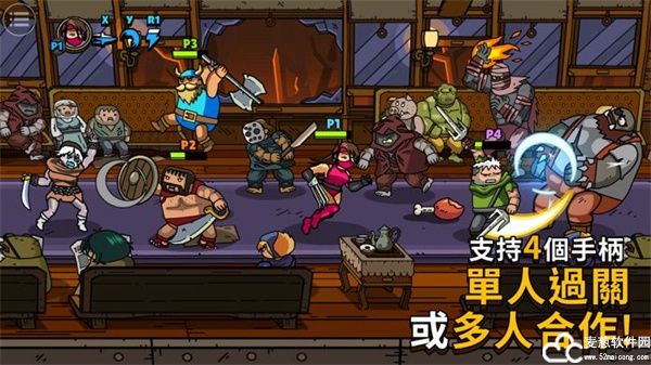1、独特的街机风格格格斗冒险手机游戏,玩家可以单人或多人(四人)战斗。