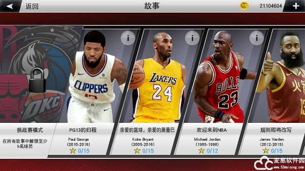 进行5个全新nba故事模式游戏,细细品位着名nba球星和球队的历史。