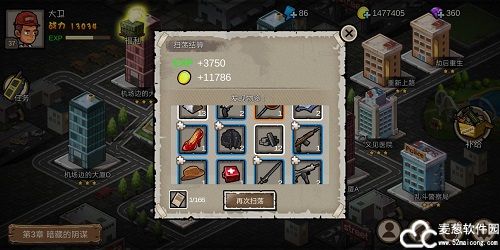 2、第二章第7关刷弹夹(求助警察局):从此时开始,玩家就可以重复刷2-7来获得大量弹夹了,手动刷关或扫荡刷关都可以,这一关玩家只要把第一层僵尸杀光就可以,第二层可以直接开门找炮哥帮打,弹夹是玩家闯关的资本,虽然关卡中玩家的弹夹只显示3个,但是实际可以把背包里所有弹夹用掉,只要舍得刷弹夹用弹夹,刷到3-3并不难。