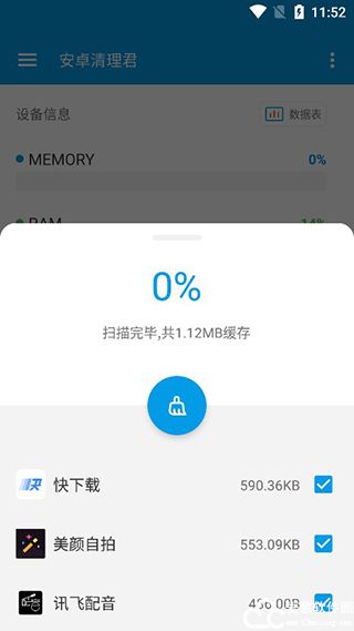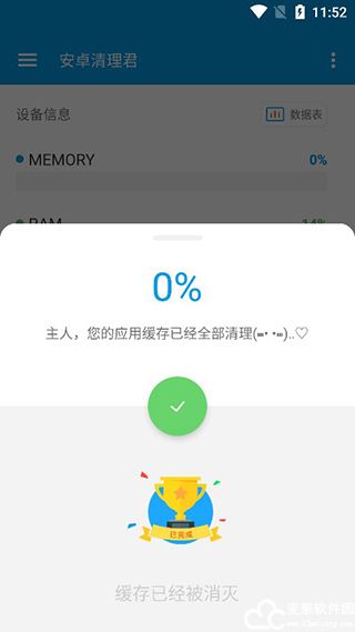 5、如下图所示,成功清理了全部的应用缓存让你的手机运行更加流畅。
