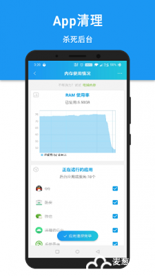 1、一键杀死正在运行的进程(拒绝流氓App后台搞事,一键Kill!),还支持吃掉内存,以毒攻毒,杀死全部流氓后台!