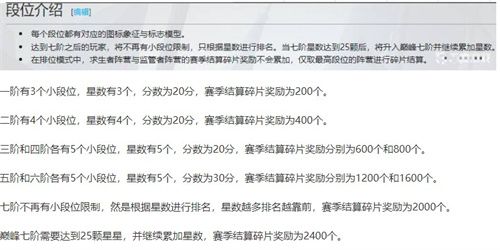 每个段位都有对应的图标象征与标志模型,达到七阶之后的玩家,将不再有小段位限制,只根据星数进行排名。当七阶星数达到25颗后,将升入巅峰七阶并继续累加星数。在排位模式中,求生者阵营与监管者阵营的赛季结算碎片奖励不会累加,仅取最高段位的阵营进行碎片结算。