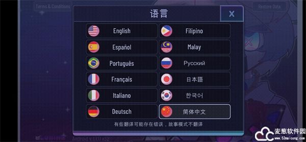 1、打开游戏,右下角可以更换语言,这也是小编带来版本的亮点;