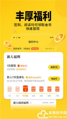 新手红包、阅读时长、每日分享、邀请好友,完成任务即有大量金币和现金奖励! 现金可提现,提现门槛低、速度快!