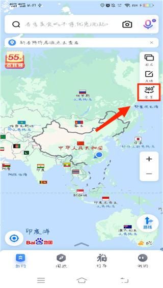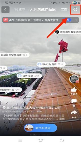2、软件会自动推送一些受欢迎的全景图,点击右上角的放大镜可以使用搜索功能