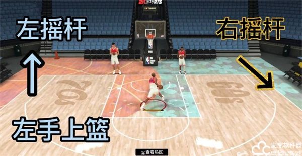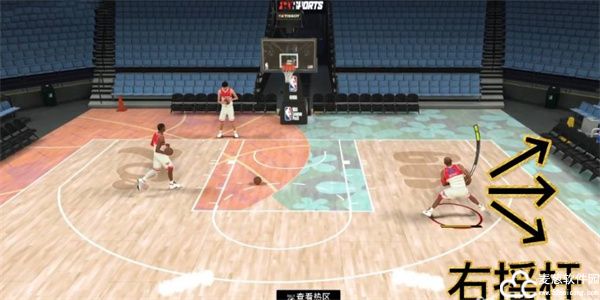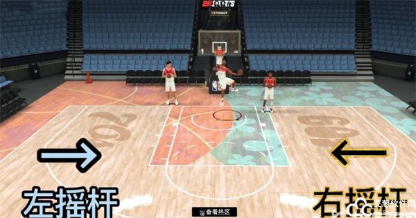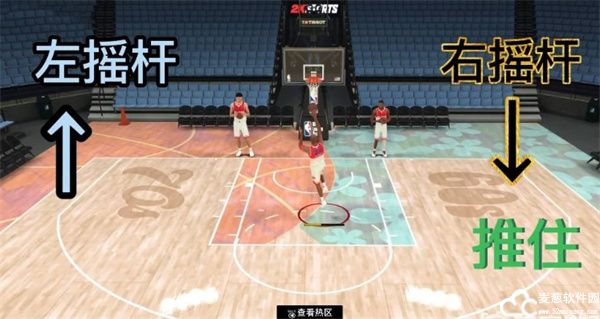 3、抛投:往前运球不要按加速,然后摇杆往后拨,也就是篮筐相反的方向