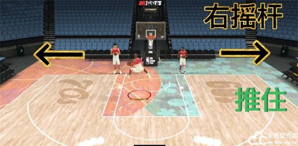 4、底线拉杆:加速往前运球,朝来的方向直接推右摇杆,你从哪边运球就朝哪边推摇杆即可。