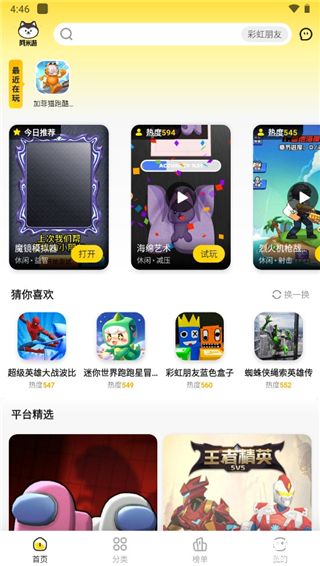 3、软件内含海量游戏,用户可以先试玩再下载,喜欢的都可以很好的满足你。