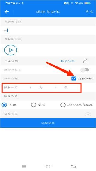 4、在执行次数栏中选中随机次数,随后可以在随机执行中设置执行次数的范围区间