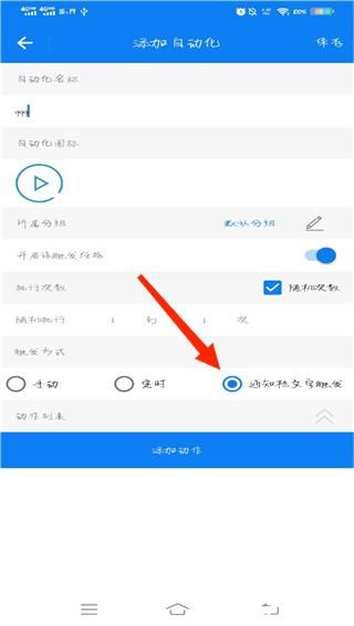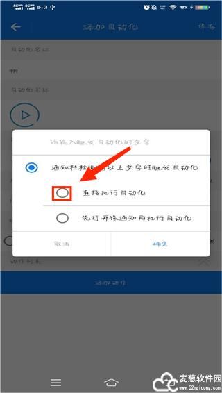 6、设置触发自动化的文字内容,并勾选直接直接执行自动化,然后点击确定