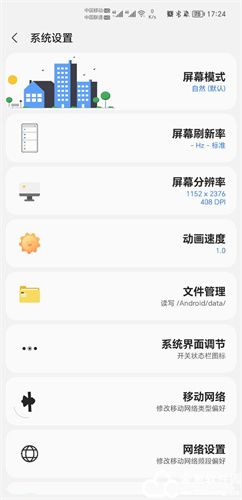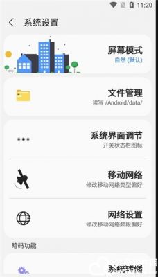 屏幕模式、系统文件管理读写/android/data/、系统界面调节、移动网络模式、移动网络频段、暗码功能