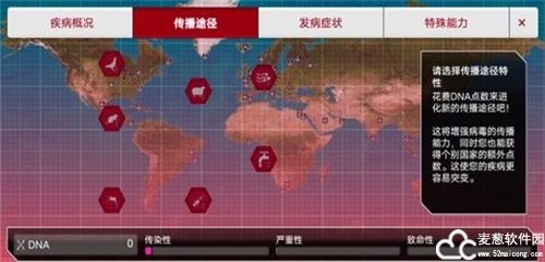 2、病毒传播之后,需要先升级传播方式,前期一定不要浪费基因,只升空气传播和水路传播这两个途径,其他的不用管。
